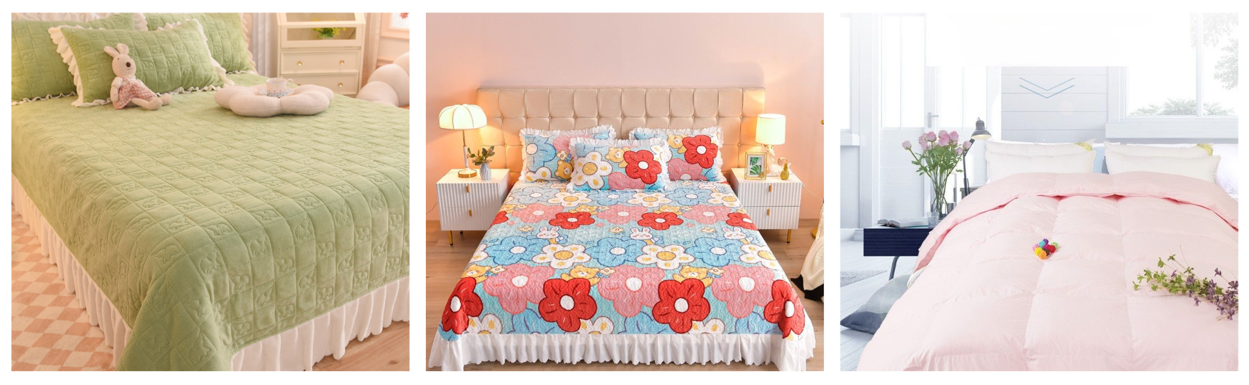 水色の穏やかな色合いにかわいい花と動物のデザインが加わり、毎日の眠りを甘い夢で満たしてくれることでしょう。